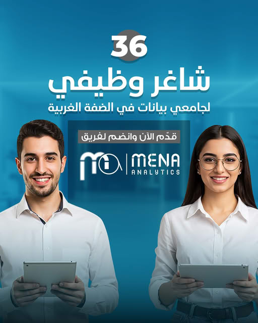 تعلن شركة Menalytics عن توفر وظائف جامعي بيانات 2025 في عدة مدن بالضفة الغربية: جنين، نابلس، طولكرم، طوباس، قلقيلية، سلفيت، أريحا، رام الله، الخليل، بيت لحم، والقدس.
