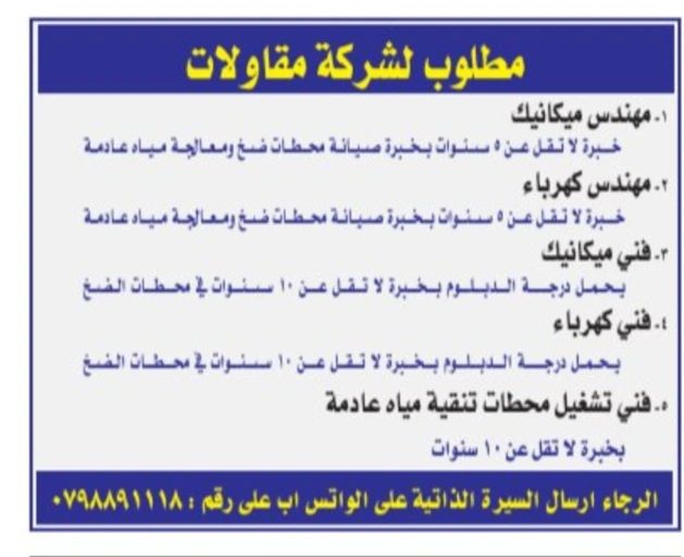 إذا كنت تمتلك خبرة قوية في محطات الضخ أو معالجة المياه العادمة فهذه فرصتك الذهبية للانضمام إلى شركة مقاولات كبرى داخل الأردن برواتب مجزية وتوظيف فوري.