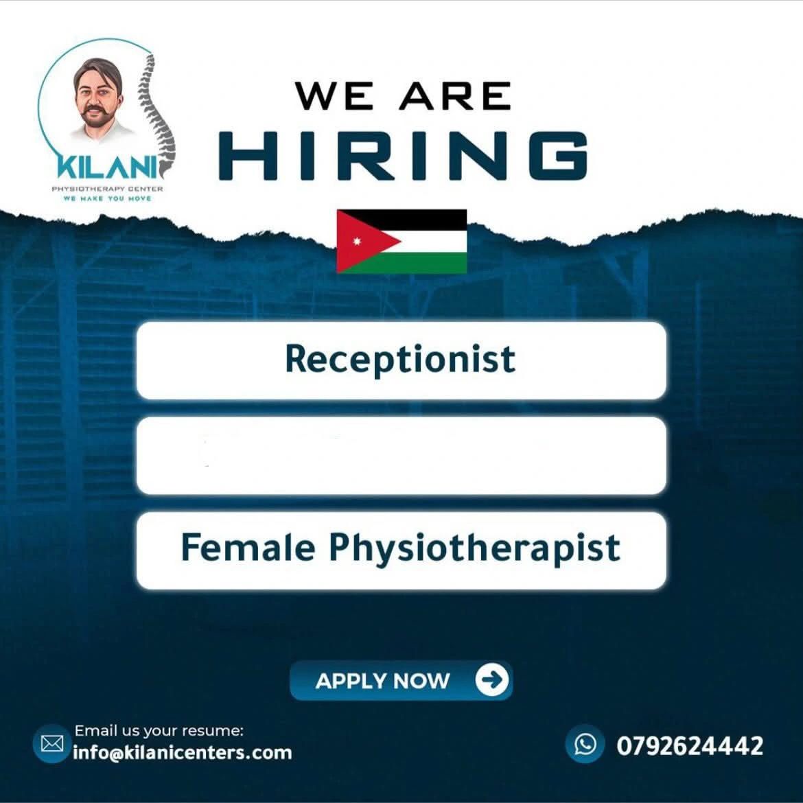 🚨 توظيف فوري – مركز الكيلاني للعلاج الطبيعي – الأردن