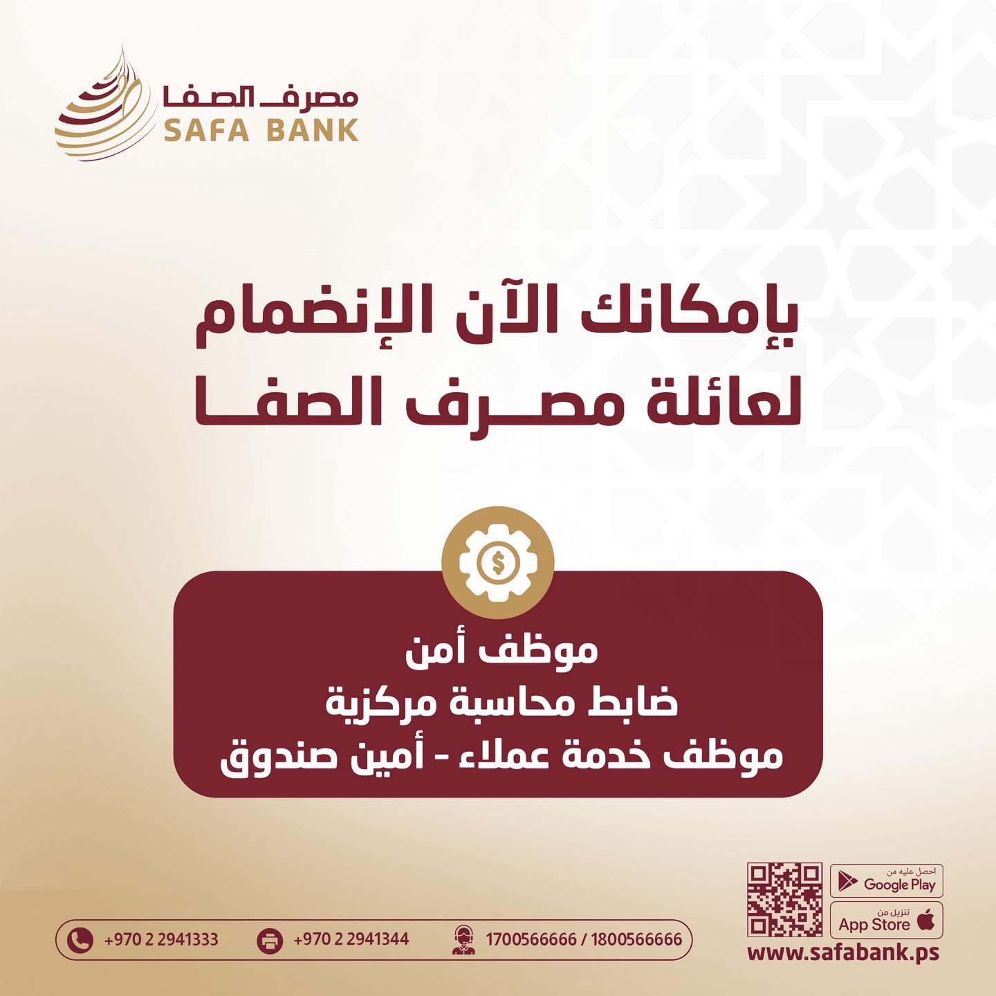 يعلن مصرف الصفا الإسلامي عن فتح باب التقديم لعدة شواغر وظيفية في مجالات مختلفة ضمن فروعه، وذلك لتعزيز فريق العمل وتقديم خدمات مصرفية متميزة. إليك التفاصيل: