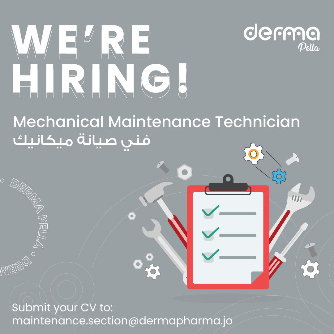 📌 خبرة 2–3 سنوات في الصيانة الميكانيكية، يفضل في مصانع الأدوية أو الغذاء
