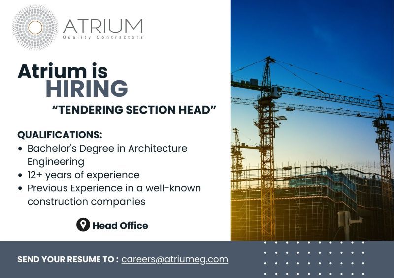 🚨 توظيف فوري: رئيس قسم المناقصات لدى Atrium