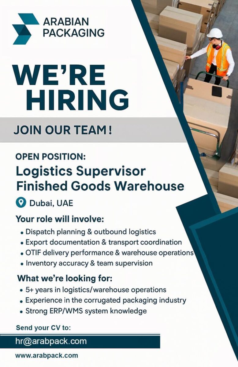 🏭 1. مشرف لوجستيات – دبي 2025