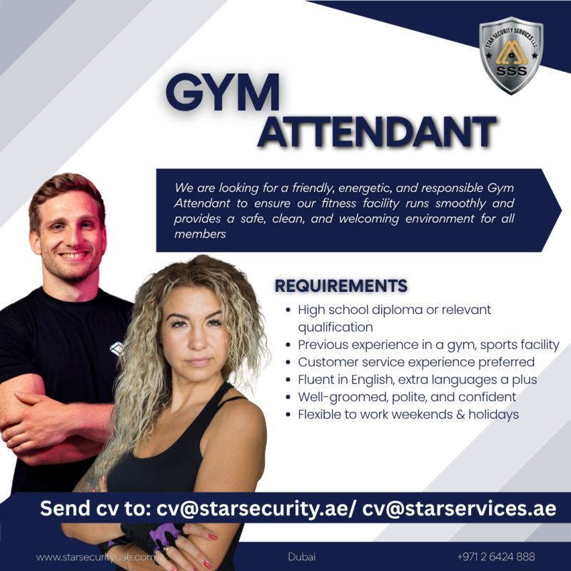 🏋️ 4. موظف نادي رياضي (Gym Attendant) – دبي 2025