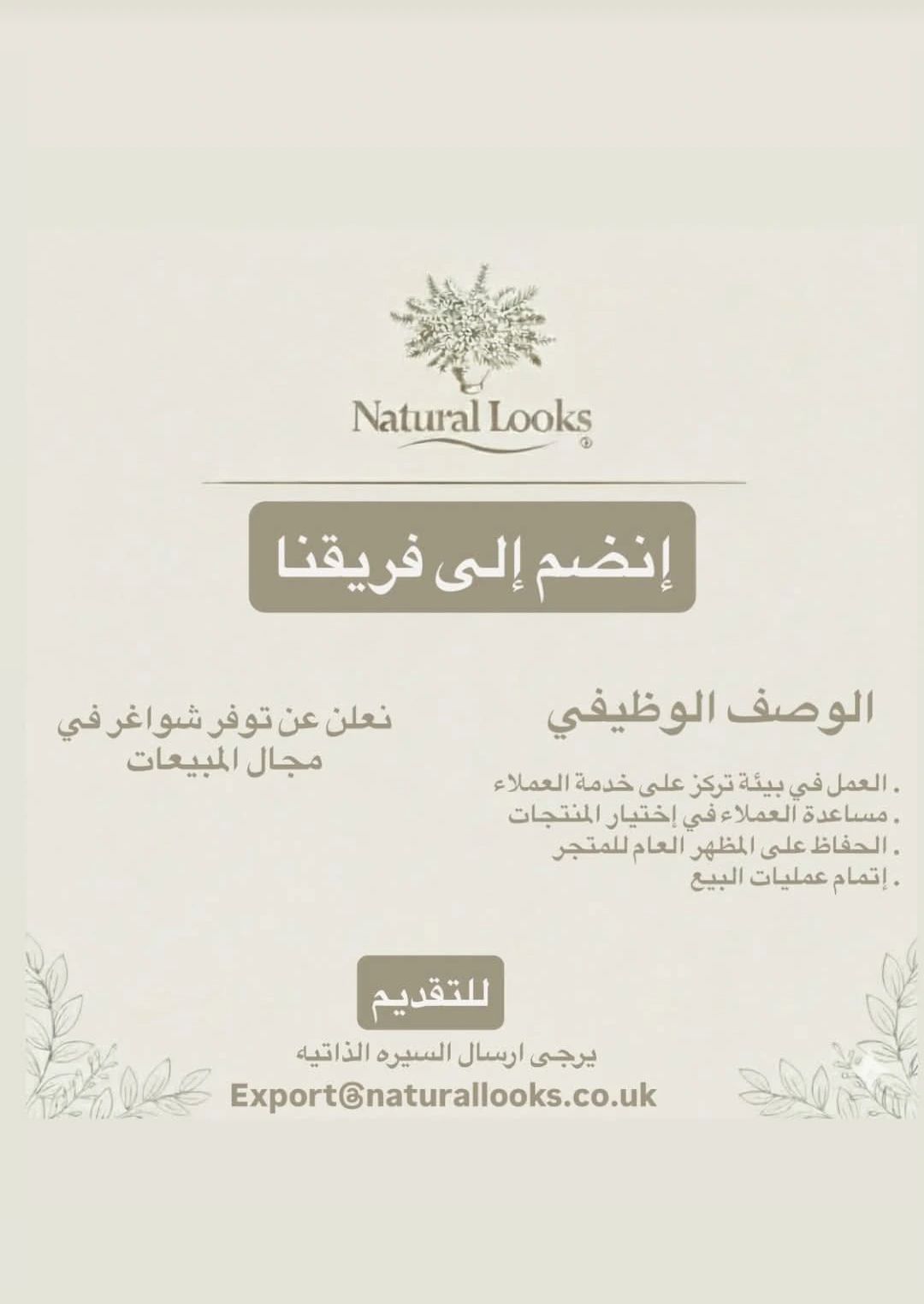 🚨 توظيف فوري – موظف مبيعات لدى Natural Looks
