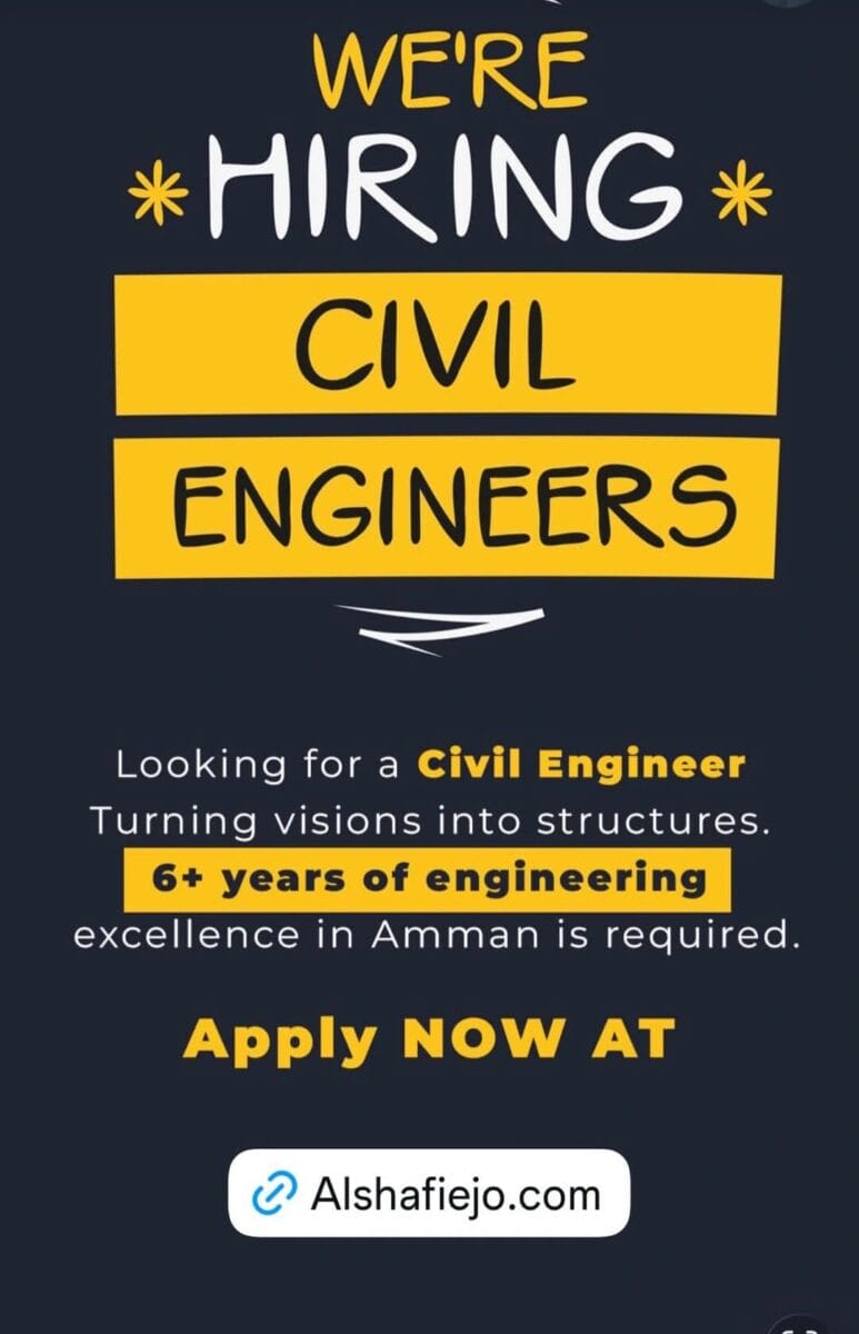 إذا كنت تبحث عن وظائف مهندسين مدنيين في الأردن اليوم — لا تفوت الفرصة.