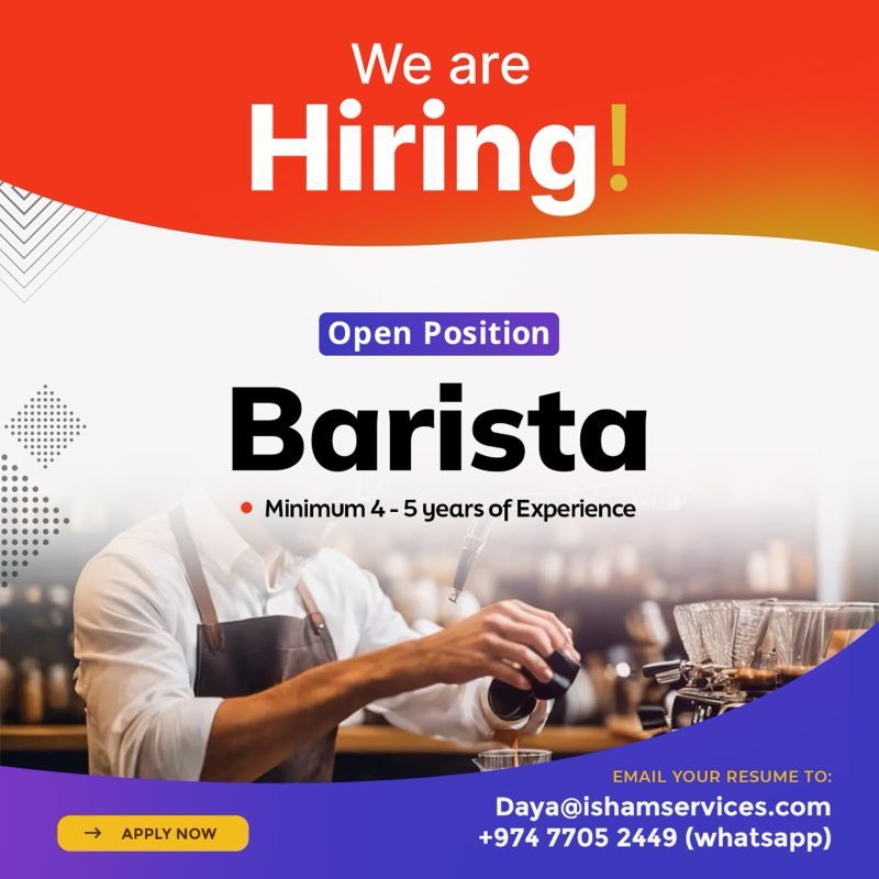 هل تبحث عن فرصة عمل مميزة في تخصص بارستا في قطر؟ نقدم لك فرصة عمل لعام 2025 مع متطلبات واضحة وفرصة لتطوير مهاراتك.
