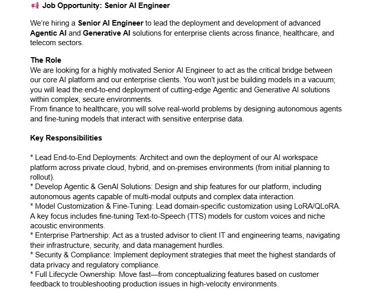 🚨 توظيف فوري: Senior AI Engineer – العدد محدود