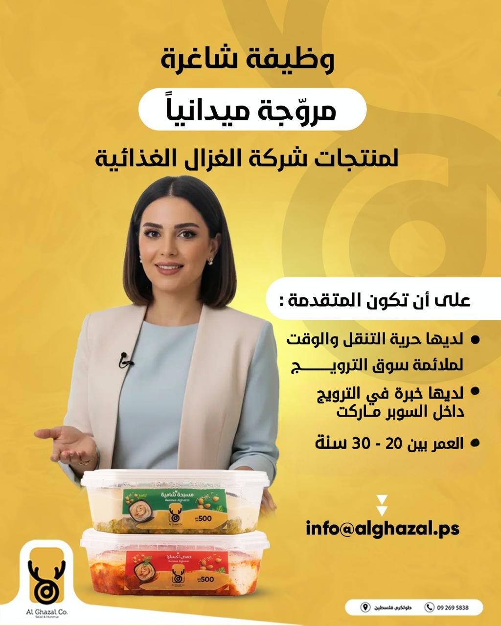 وظائف ترويج – الغزال رام الله وطولكرم 2025