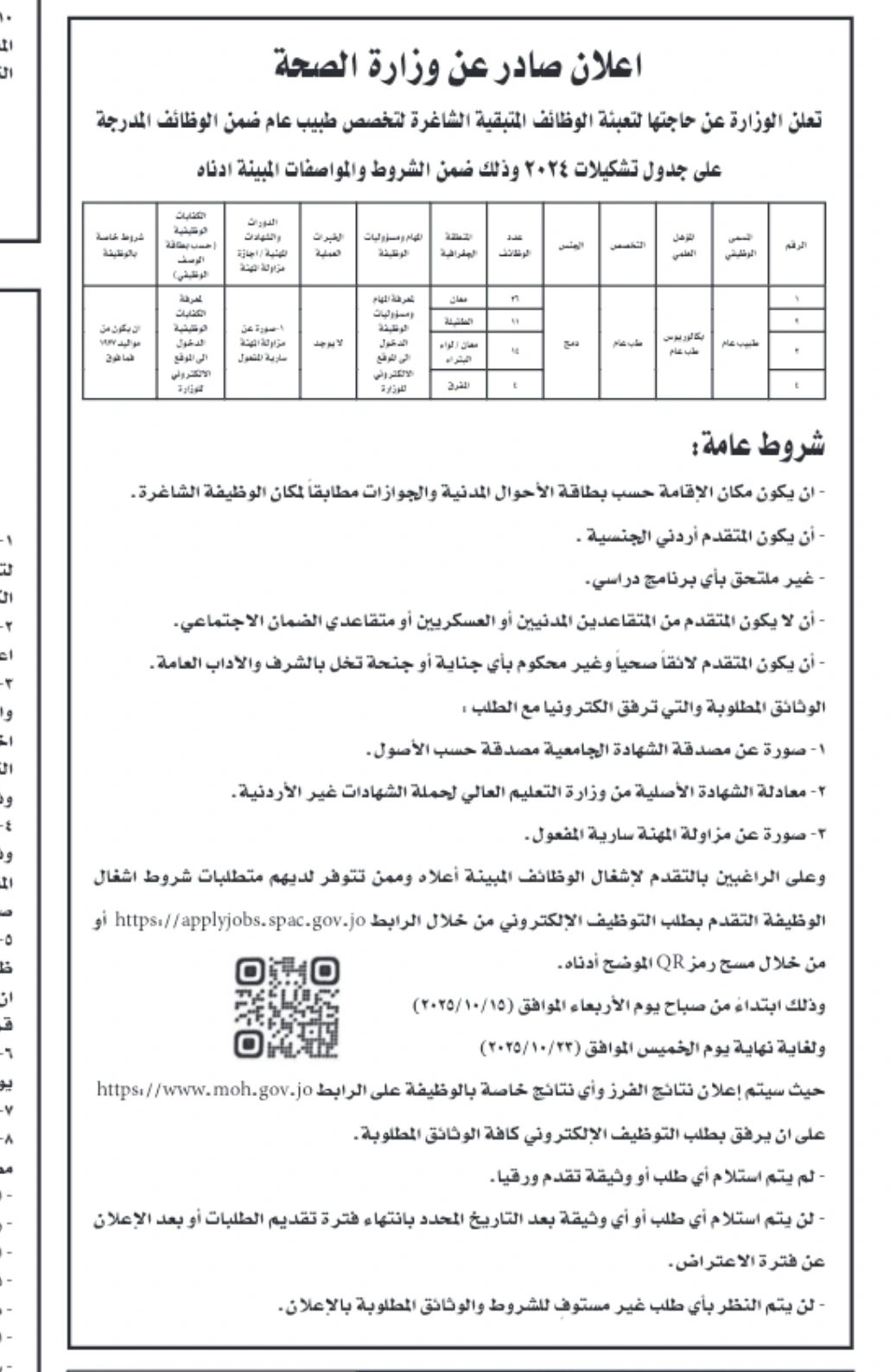 إعلان وظائف وزارة الصحة 2025 في الأردن