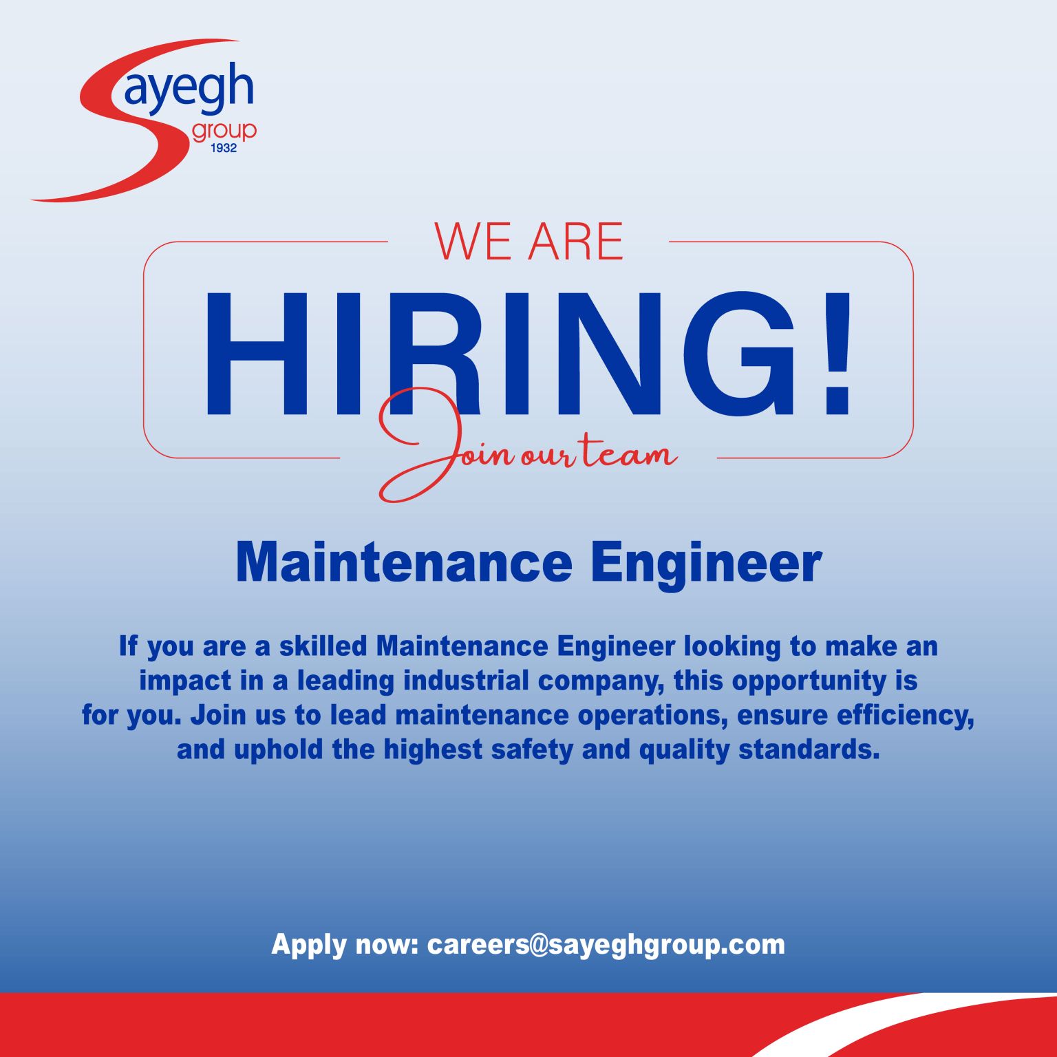 تعلن مجموعة الصايغ عن توفر شاغر مهندس صيانة Maintenance Engineer للعمل في الأردن، للانضمام إلى فريقها وضمان استمرارية التشغيل وفق أعلى معايير السلامة والجودة.