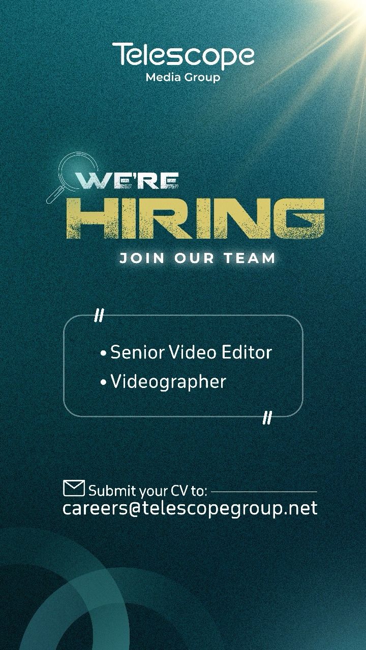 تعلن شركة Telescope Media Group في عمّان عن توفر وظائف في مجال الإعلام والإنتاج المرئي، وتدعو الكفاءات المميزة للانضمام إلى فريقها الإبداعي.