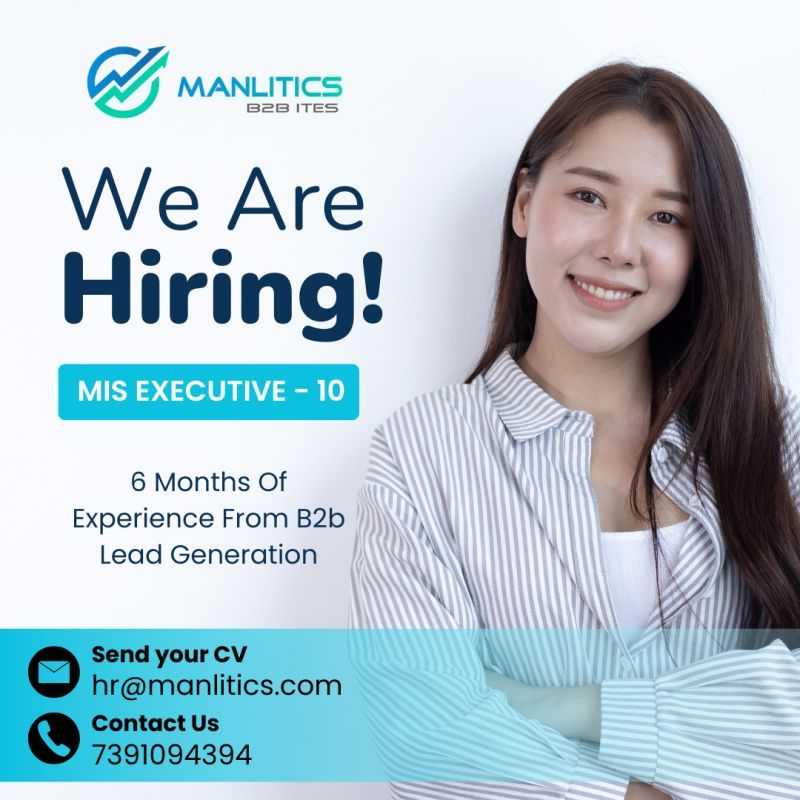 تُعلن شركة Manlitics B2B ITES عن حاجتها لتعيين 10 موظفين لوظيفة MIS Executive للعمل بدوام كامل، على أن يكون لديهم خبرة لا تقل عن 6 أشهر في توليد العملاء المحتملين (B2B Lead Generation).