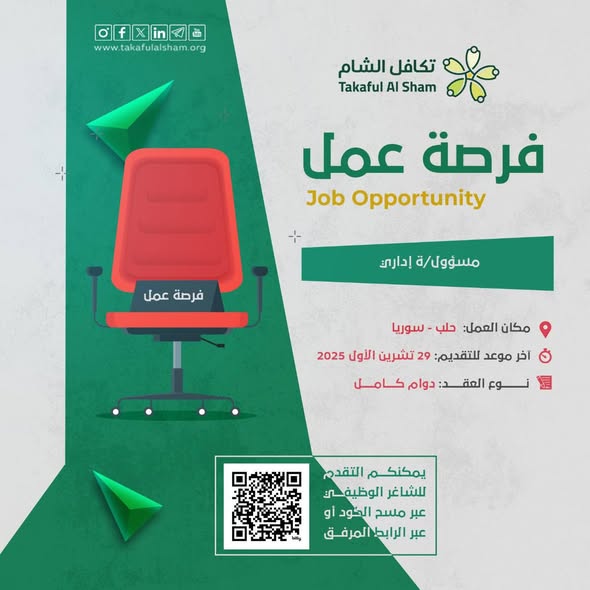 📢 فرصة عمل مميزة لدى منظمة تكافل الشام الخيرية 🇸🇾