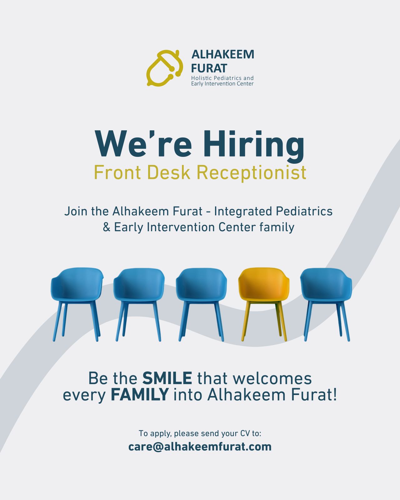 نحن نبحث عن موظف/ة استقبال محترف/ة في مركز الحكيم فرات للأطفال والتدخل المبكر!