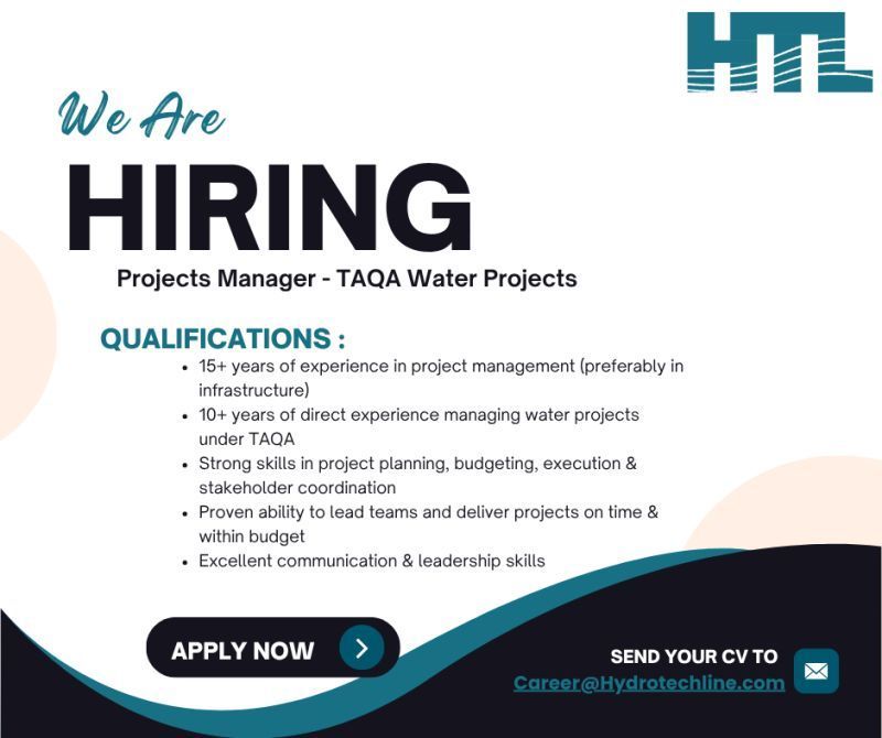 انضم إلى فريق HTL المتميز وساهم في تطوير مشاريع المياه المستقبلية. تابعنا لمزيد من فرص العمل في مجالات الطاقة والبنية التحتية.