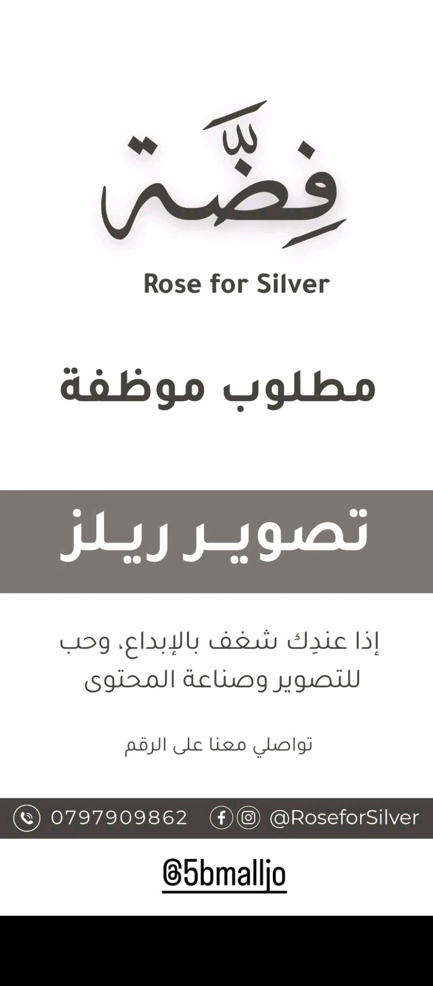 ✅ مطلوب موظفة تصوير ريلز لدى Rose for Silver في عمان.