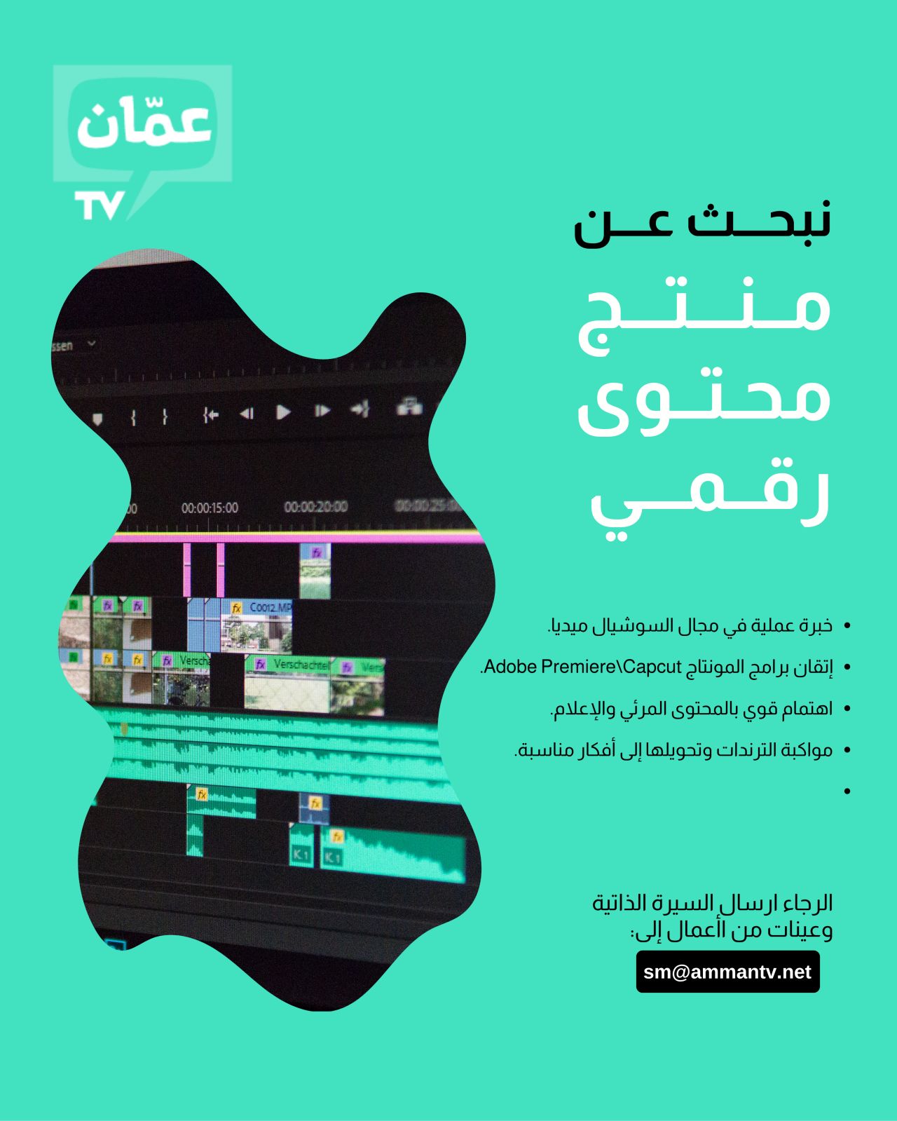 Amman TV تبحث عن منتج محتوى رقمي مبدع، شغوف، وسريع الالتقاط للأفكار العصرية.