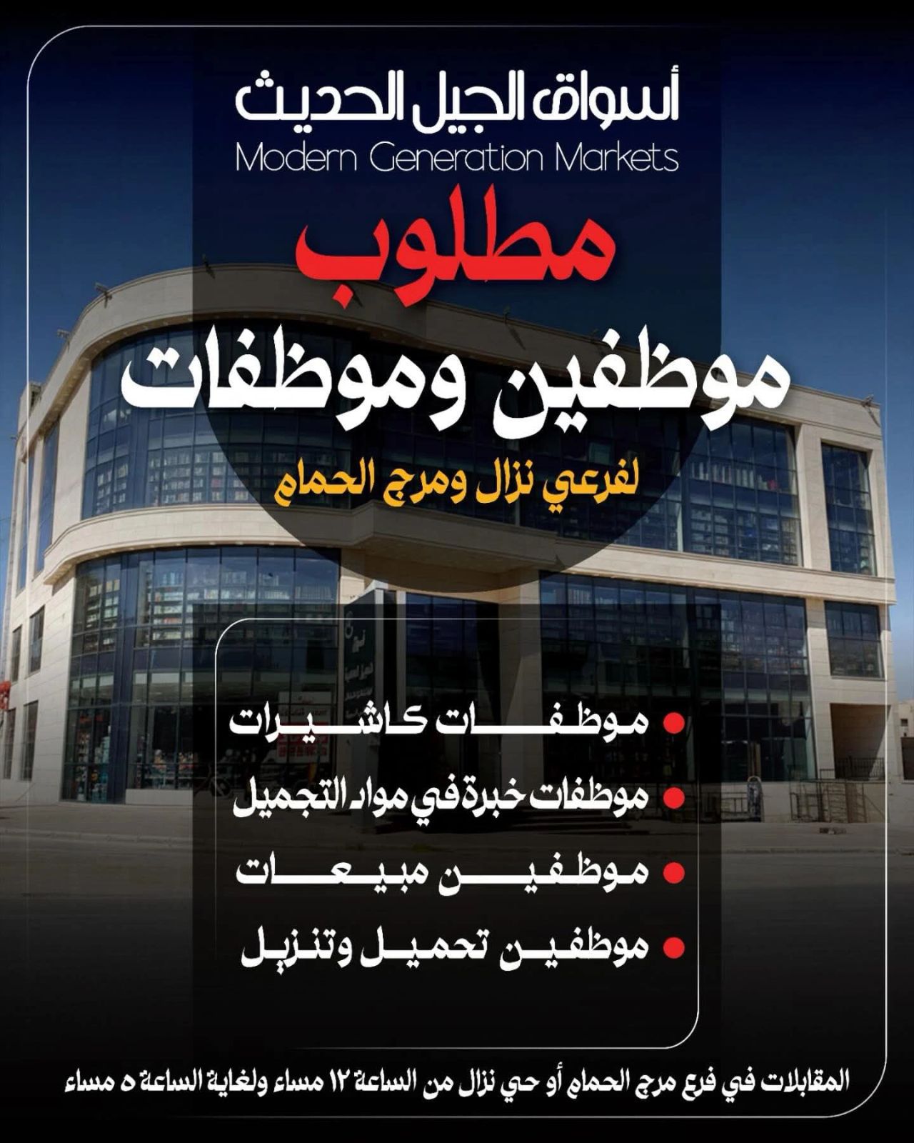 فرص عمل لدى أسواق الجيل الحديث: وظائف شاغرة في نزال ومرج الحمام