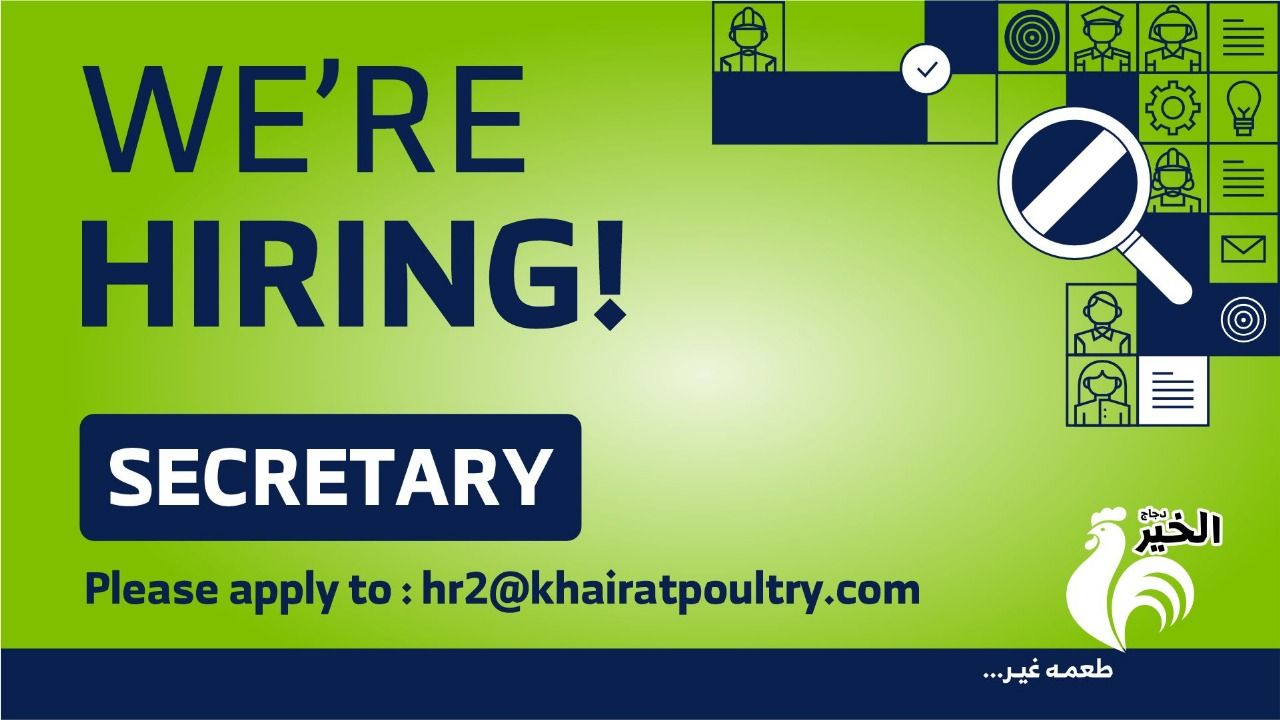 تعلن شركة الخير للدواجن عن حاجتها لتعيين سكرتيرة وفق المتطلبات التالية: