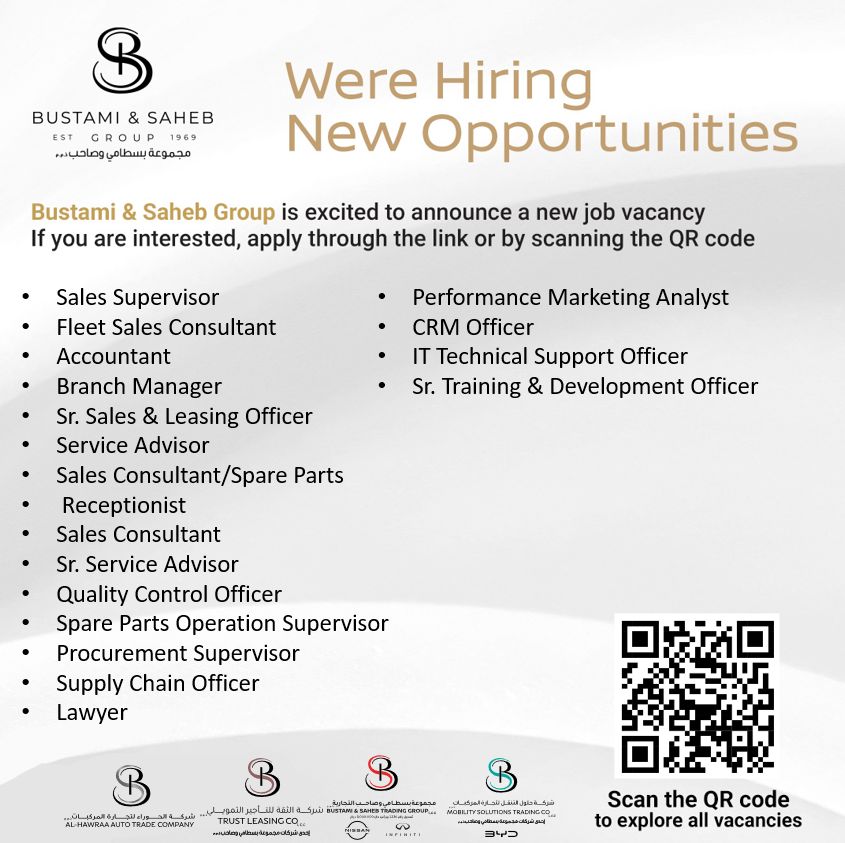 سواء كنت محترفًا بخبرة طويلة أو تبحث عن المرحلة التالية في مسيرتك المهنية، فهذه فرصتك للانضمام إلى واحدة من أبرز الشركات الرائدة في قطاع السيارات والخدمات المتنوعة.