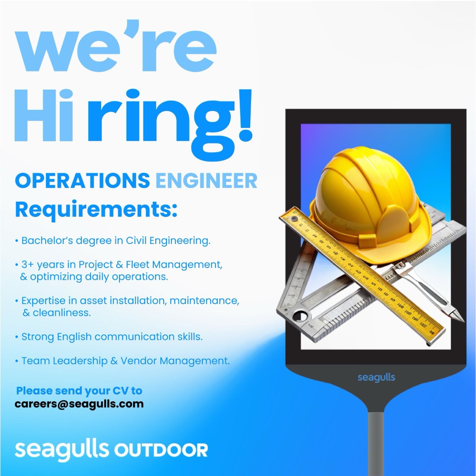 تعلن شركة Seagulls Outdoor عن حاجتها إلى Operations Engineer للانضمام إلى فريقها في عمّان. إذا كنت تمتلك خبرة في إدارة المشاريع والمعدات والهندسة المدنية، فهذه فرصة حقيقية للعمل داخل بيئة ديناميكية تقدم نموًا مهنيًا مستمرًا.