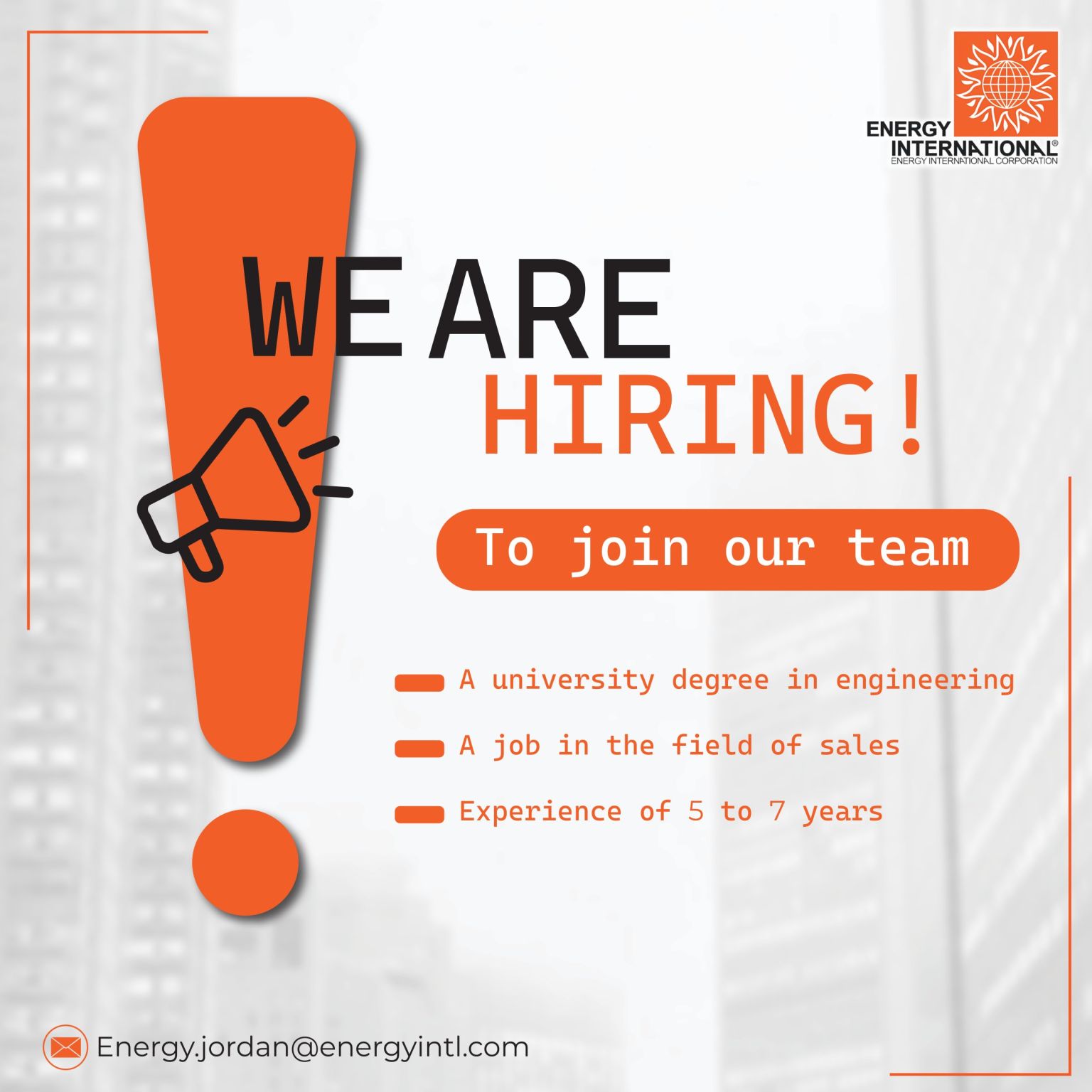 وظيفة شاغرة في Energy International الأردن: مهندس مبيعات بخبرة 5–7 سنوات