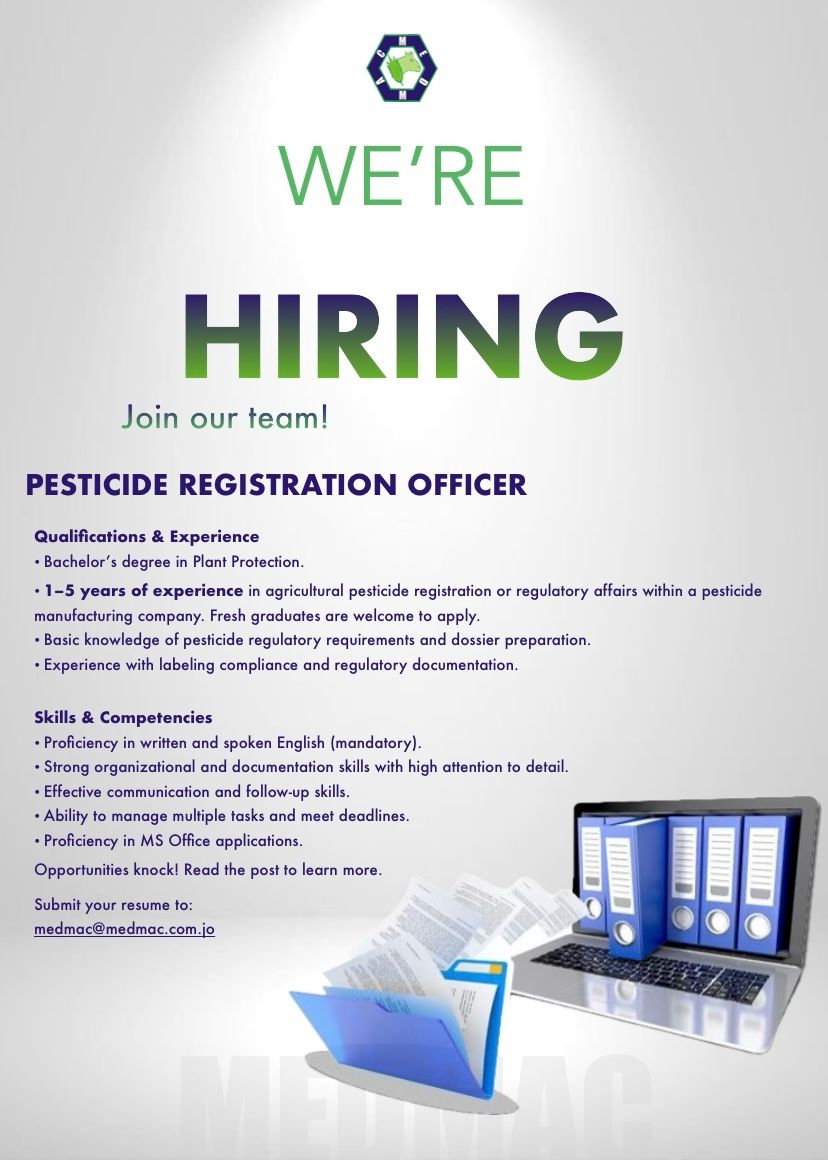 🔍 وظائف مسؤول تسجيل مبيدات – فرص عمل الشؤون التنظيمية في الأردن