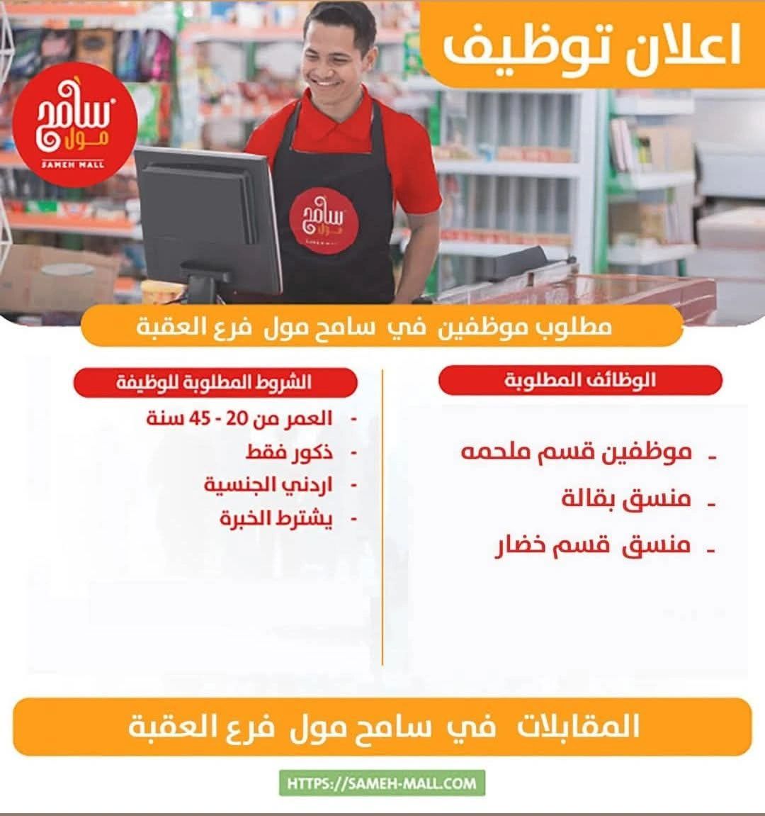 🚨 مطلوب موظفين فورًا في سامح مول – فرع العقبة