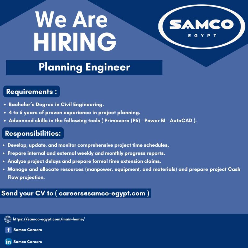 🔷 فرصة عمل Planning Engineer في SAMCO Egypt – قدّم الآن
