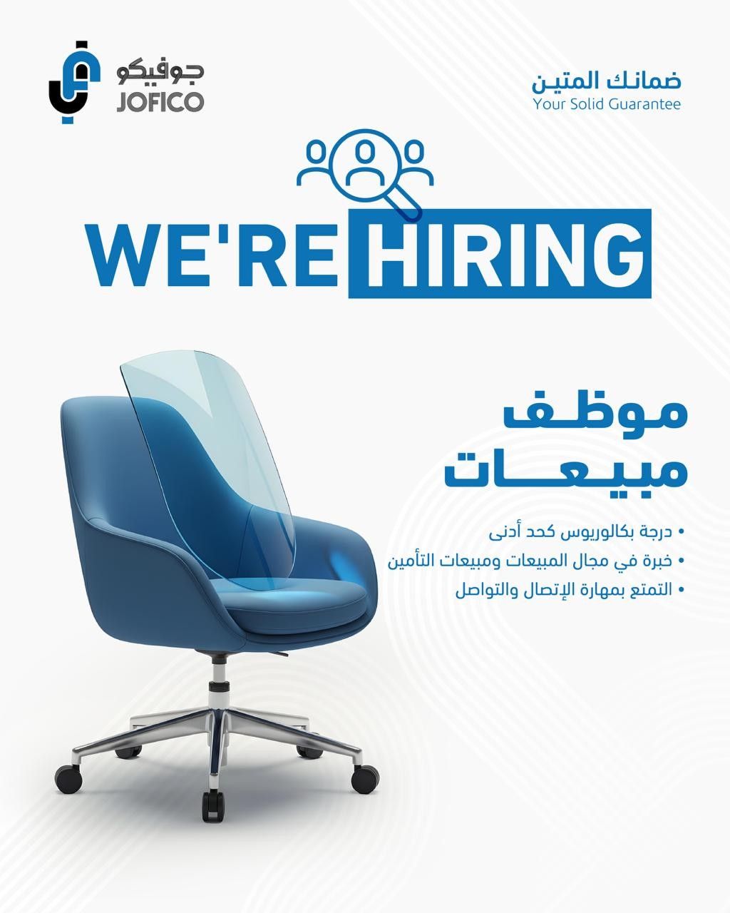 تعلن شركة جوفيكو للتأمين عن فتح باب التوظيف للراغبين بالانضمام إلى فريقها المتخصص في المبيعات والتأمين، ضمن بيئة عمل احترافية وفرص تطوير مهني حقيقية.