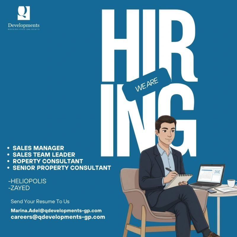 تعلن Q Developments عن فتح باب التوظيف لعدد من الوظائف القيادية والتنفيذية في مجال المبيعات والاستشارات العقارية، للأشخاص الطموحين القادرين على تحقيق النتائج وبناء علاقات طويلة المدى مع العملاء.