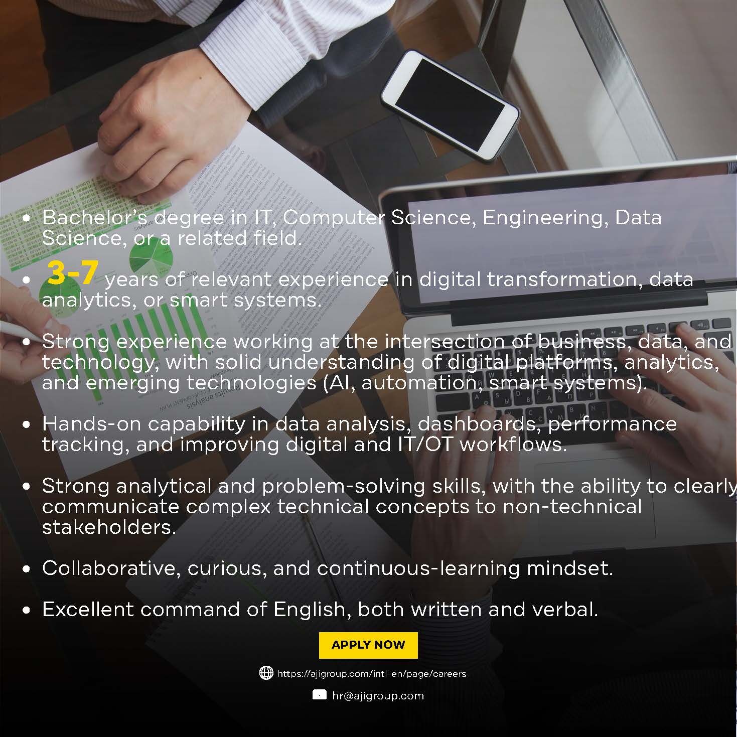 خبرة 3–7 سنوات في التحول الرقمي، البيانات، التحليلات، أو أنظمة ذكية.