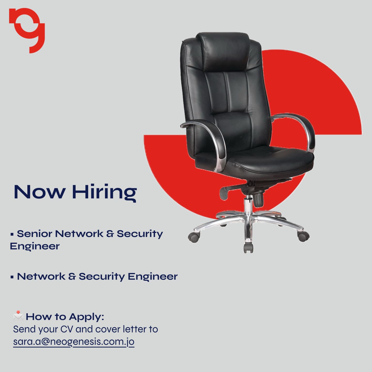 NeoGenesis Technical Solutions تعلن عن حاجتها لتعيين مهندسي شبكات وأمن معلومات (Junior & Senior) للانضمام إلى فريقها التقني في عمّان – الأردن.