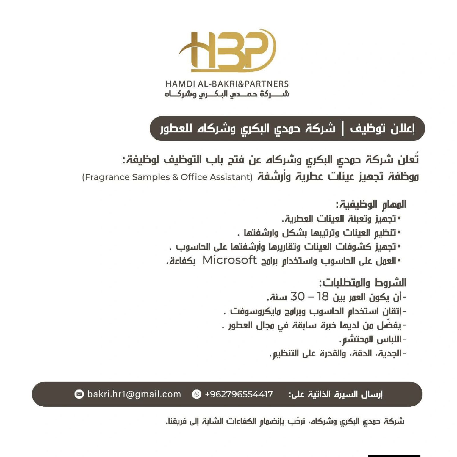 موظفة تجهيز عينات عطرية وأرشفة (Fragrance Samples & Office Assistant)