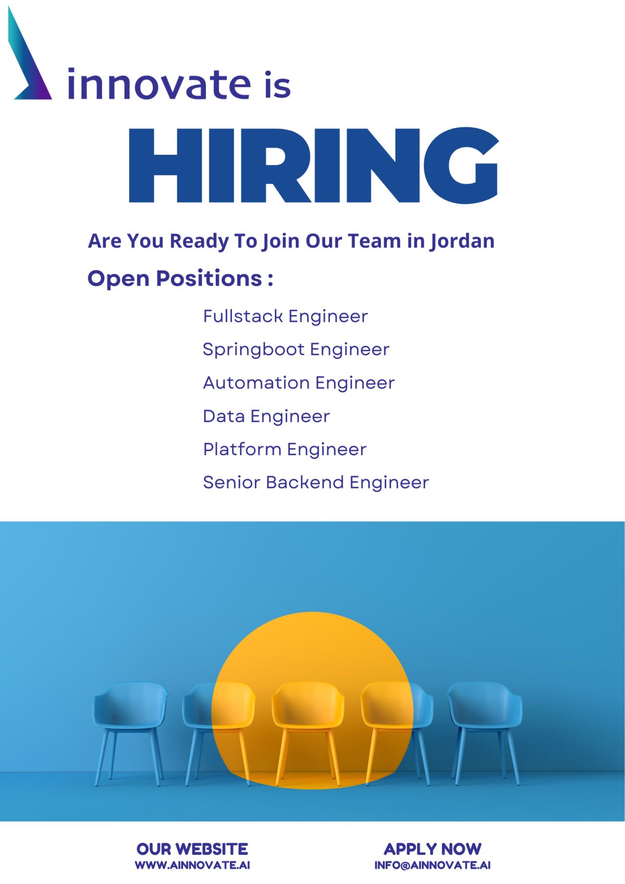 إذا كنت تبحث عن وظائف برمجة في الأردن، أو فرص عمل للمهندسين التقنيين في مجالات Backend، Full Stack، Data Engineering، وDevOps، فإن Innovate تمنحك الفرصة لتكون جزءًا من فريق يصنع حلولًا تقنية متقدمة ويؤمن بالاستثمار في الكفاءات.