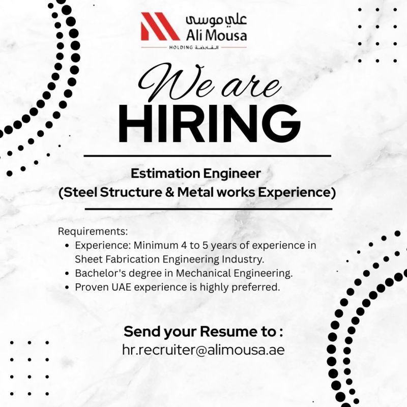 🚀 فرصة توظيف مميزة – Estimation Engineer (Steel Structure & Metal Works)