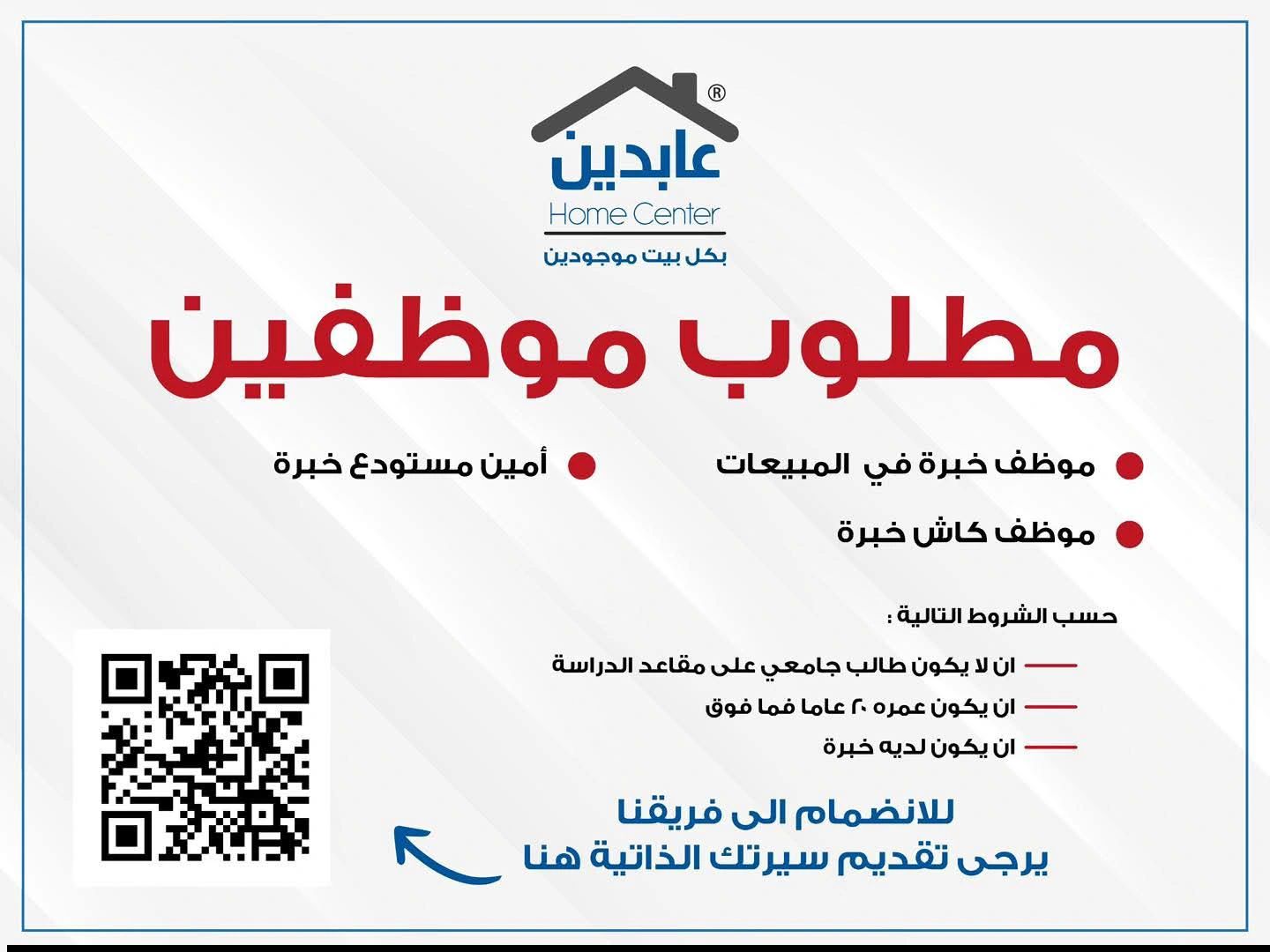 📢 عابدين هوم سنتر يعلن عن وظائف شاغرة فورية للانضمام إلى فريق عمله ضمن بيئة احترافية وحوافز مجزية.