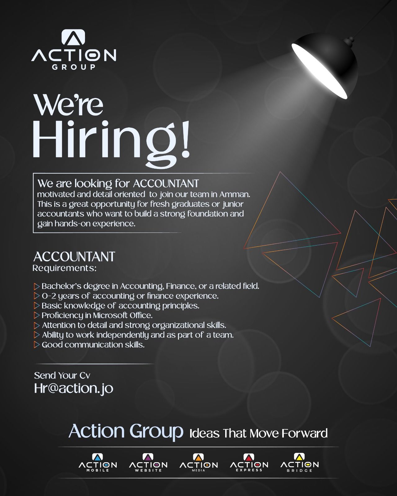 تعلن شركتنا عن حاجتها إلى محاسب/ة متحمس/ة وملتزم/ة بالتفاصيل للانضمام إلى فريقنا في عمّان. هذه الفرصة مثالية لخريجي المحاسبة والمالية الجدد أو المحاسبين ذوي الخبرة القليلة (0–2 سنة) لتطوير مهاراتهم العملية واكتساب خبرة حقيقية في بيئة عمل احترافية.