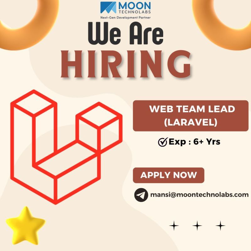 تعلن Moon Technolabs عن فتح باب التوظيف لوظيفة Web Team Lead (Laravel) لقيادة فريق تطوير الويب والعمل على مشاريع متقدمة بتقنيات حديثة.