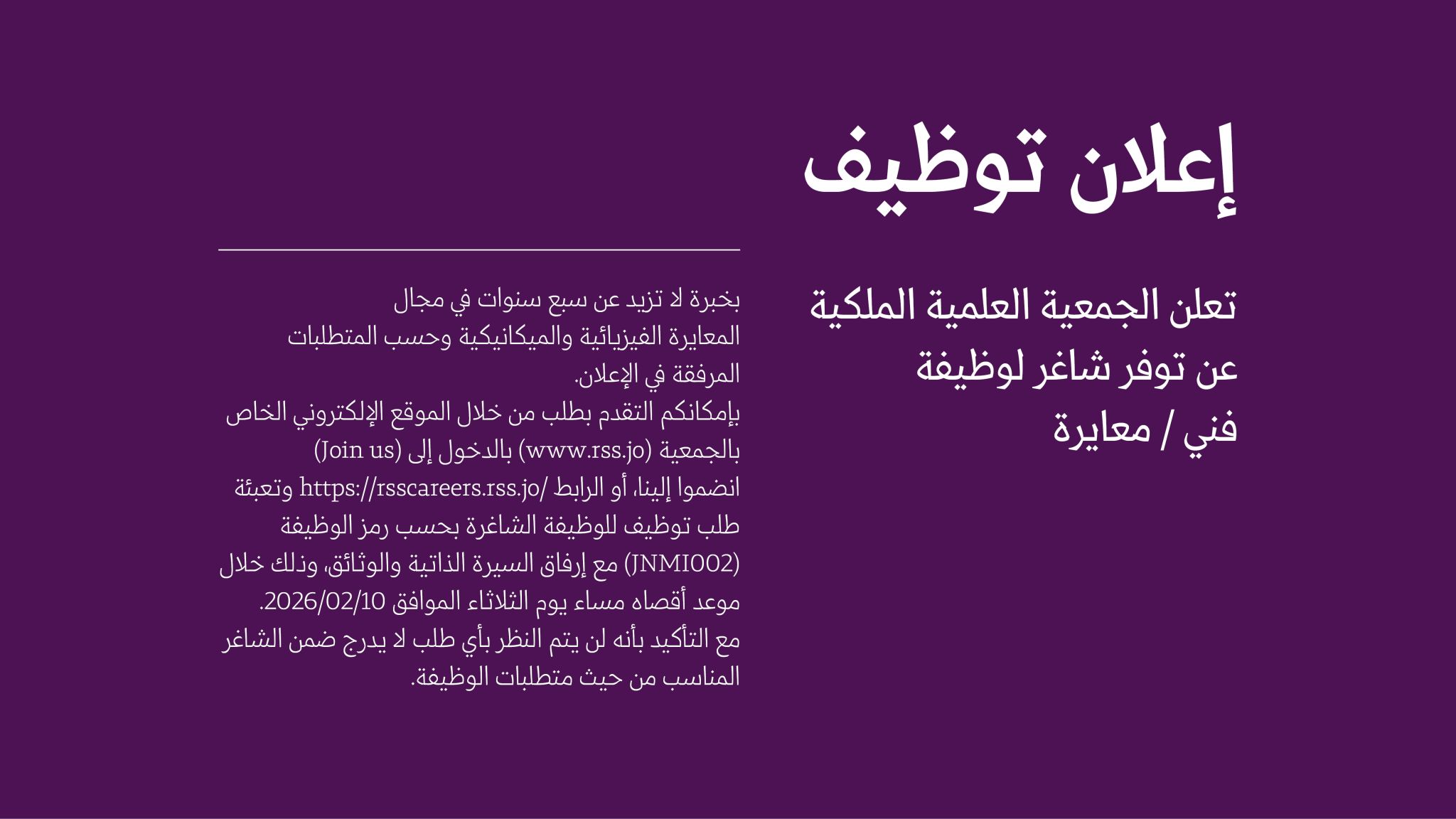 📢 تعلن الجمعية العلمية الملكية – الأردن عن حاجتها لتعيين: