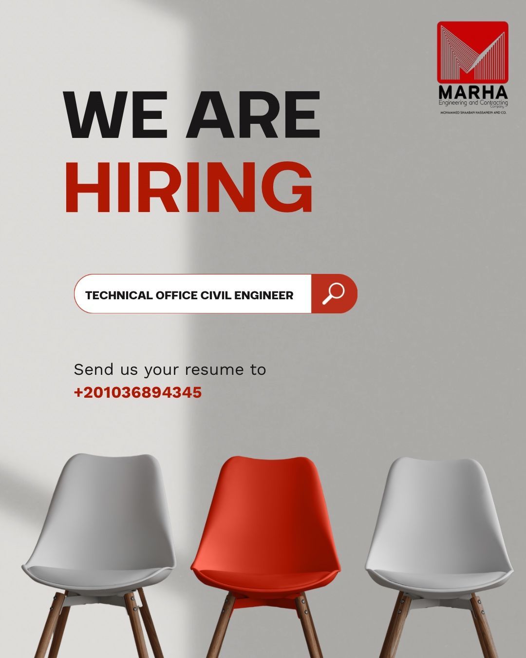 تعلن شركة MARHA Engineering & Contracting عن حاجتها إلى مهندس مكتب فني مدني (Technical Office Civil Engineer) للعمل ضمن مشاريعها الهندسية، في بيئة عمل احترافية تدعم التطور والنمو.