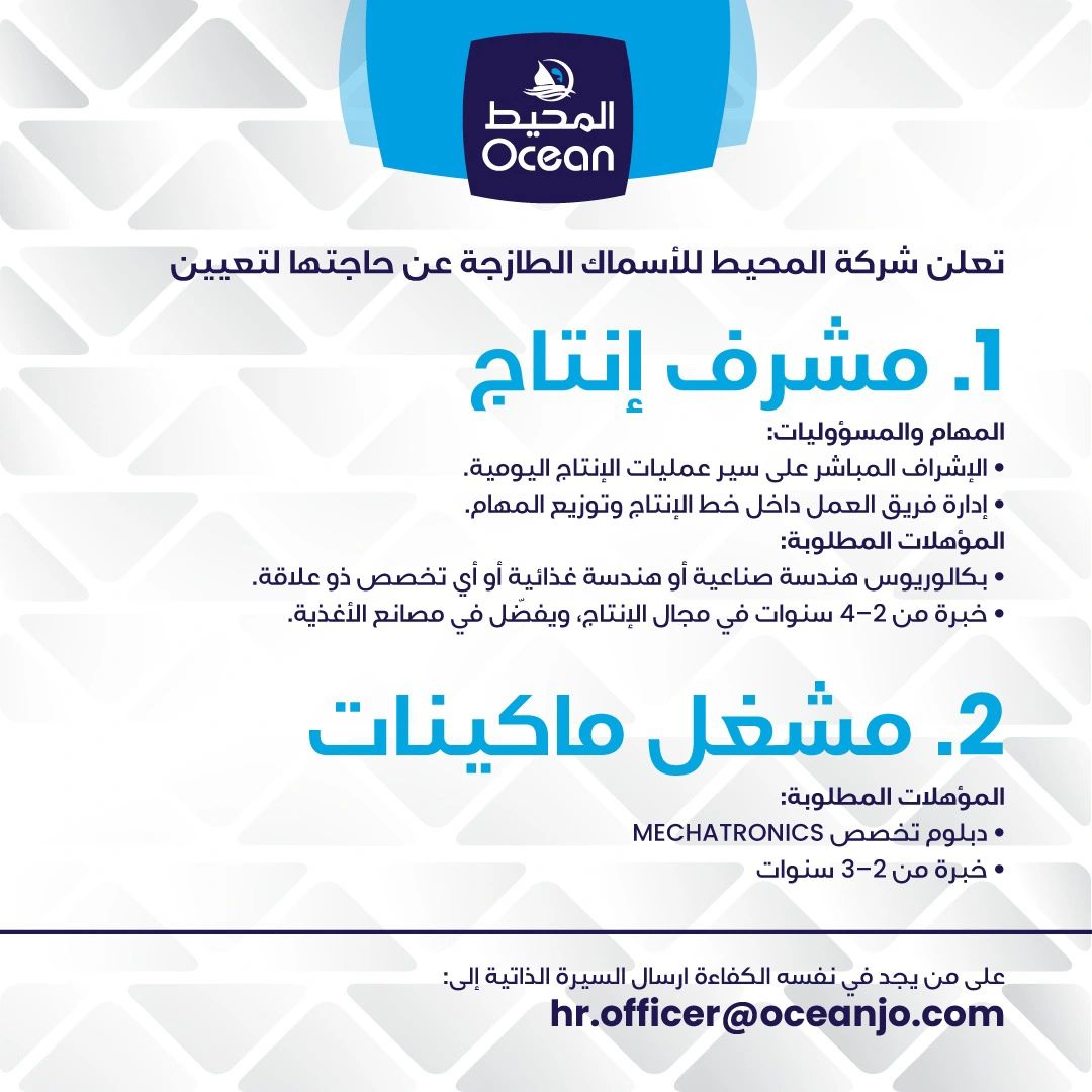 وظائف شاغرة في شركة المحيط للأسماك الطازجة – عمّان