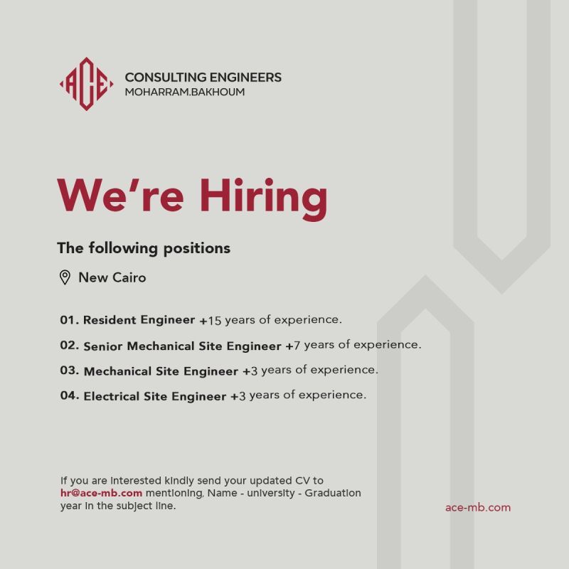 إذا كنت مهندسًا تبحث عن فرصة مهنية حقيقية في شركة استشارية رائدة، فهذه فرصتك للانضمام إلى ACE – محرم باخوم والعمل في مشاريع كبرى بالقاهرة الجديدة.