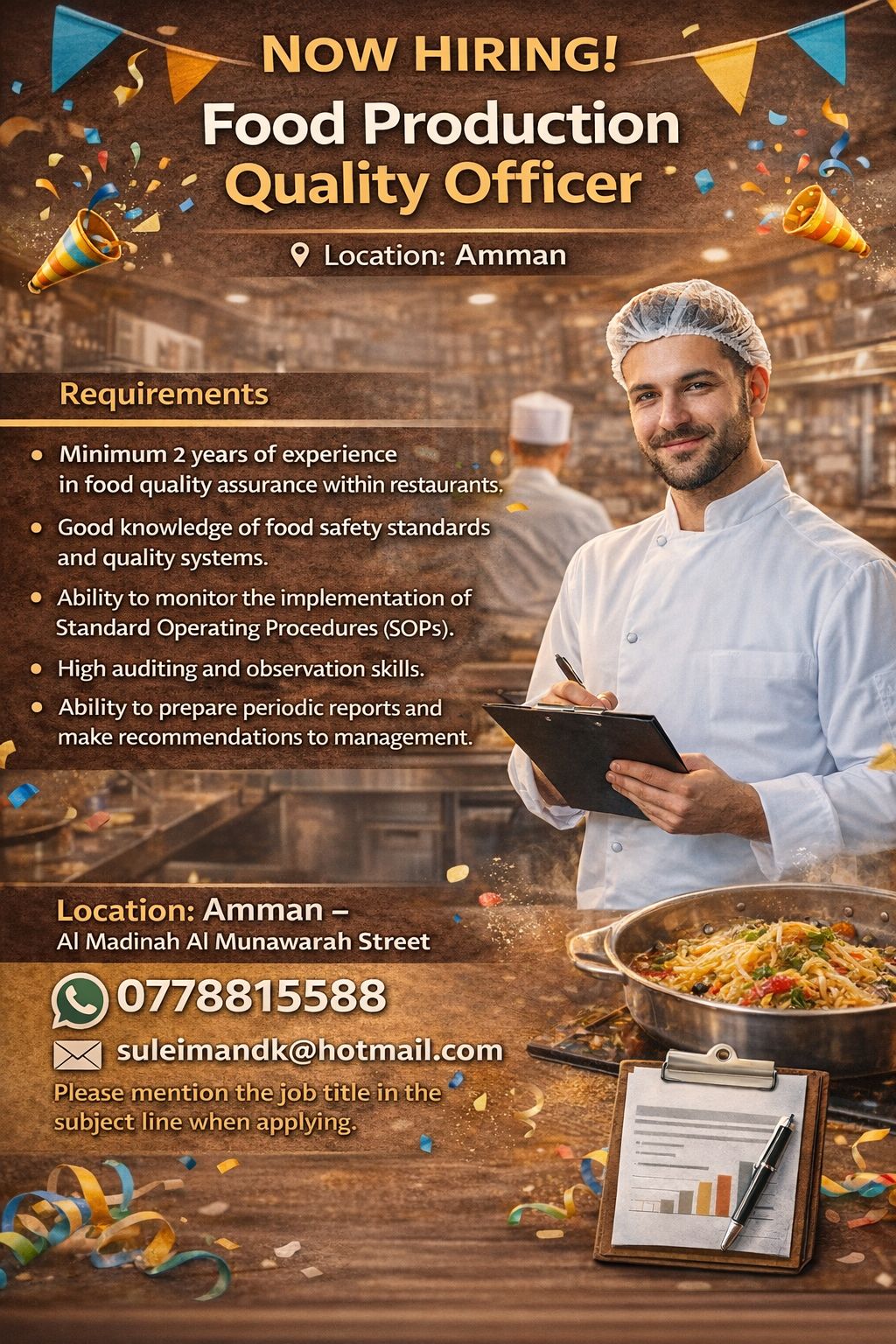عاجل مسؤول جودة إنتاج غذائي في عمّان 2026